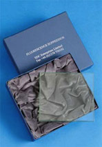 This is a laminated glass plate used to overcome optical interference from fluorescent brightening agents on textile, leather and paper. This is essential when grading assessment is carried out an item containing optical brightening agents.